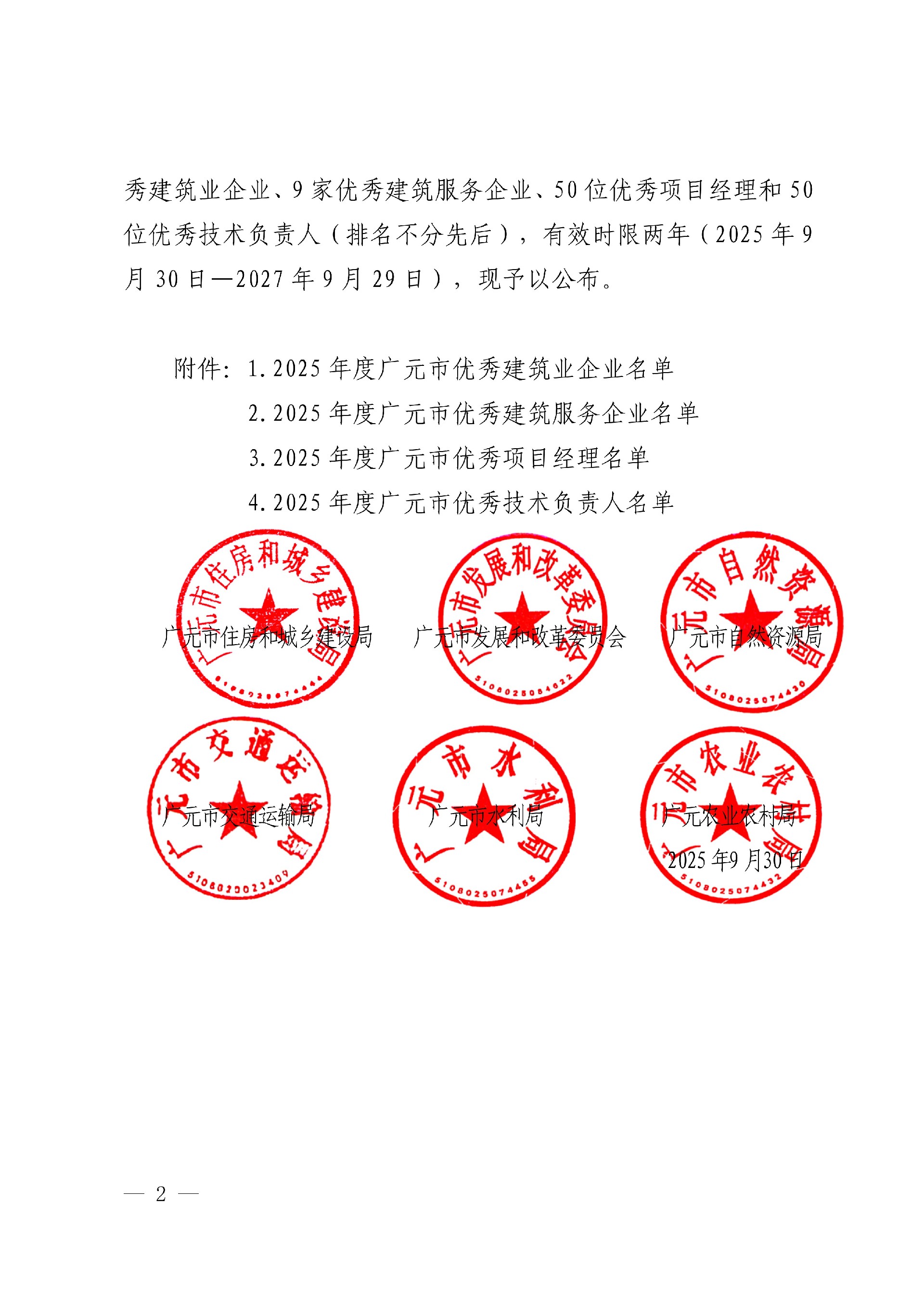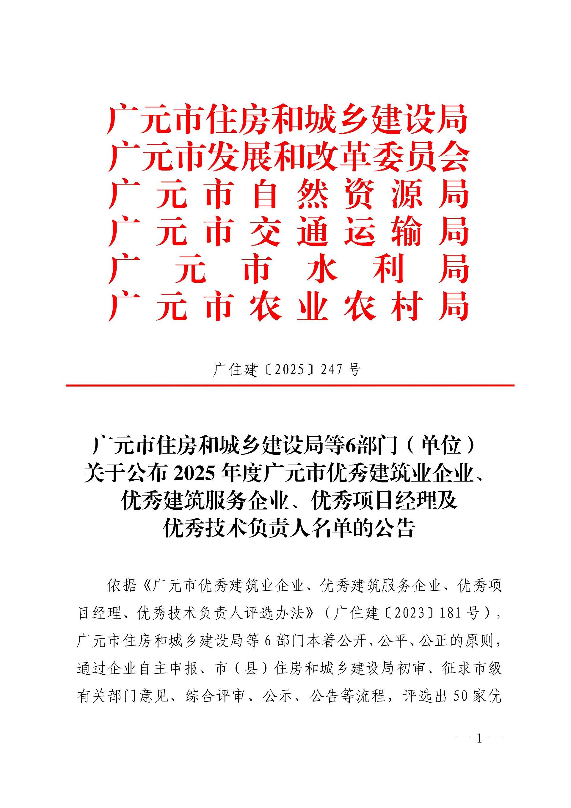 近日,廣元市住房和城鄉(xiāng)建設局等6部門(單位)公布了2025年度廣元市優(yōu)秀建筑業(yè)企業(yè)、優(yōu)秀建筑服務企業(yè)、優(yōu)秀項目經理及優(yōu)秀技術負責人名單,路橋集團獲評“2025年度廣元市優(yōu)秀建筑業(yè)企業(yè)”,副總經理母健全獲評“2025年度廣元市優(yōu)秀技術負責人”。