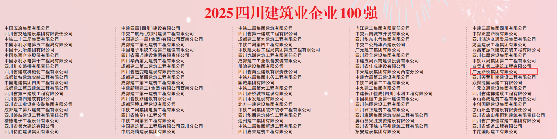 2025年10月23日,四川省企業(yè)聯(lián)合會、四川省企業(yè)家協(xié)會首次發(fā)布2025四川建筑業(yè)企業(yè)100強名單,路橋集團(tuán)成功入圍。